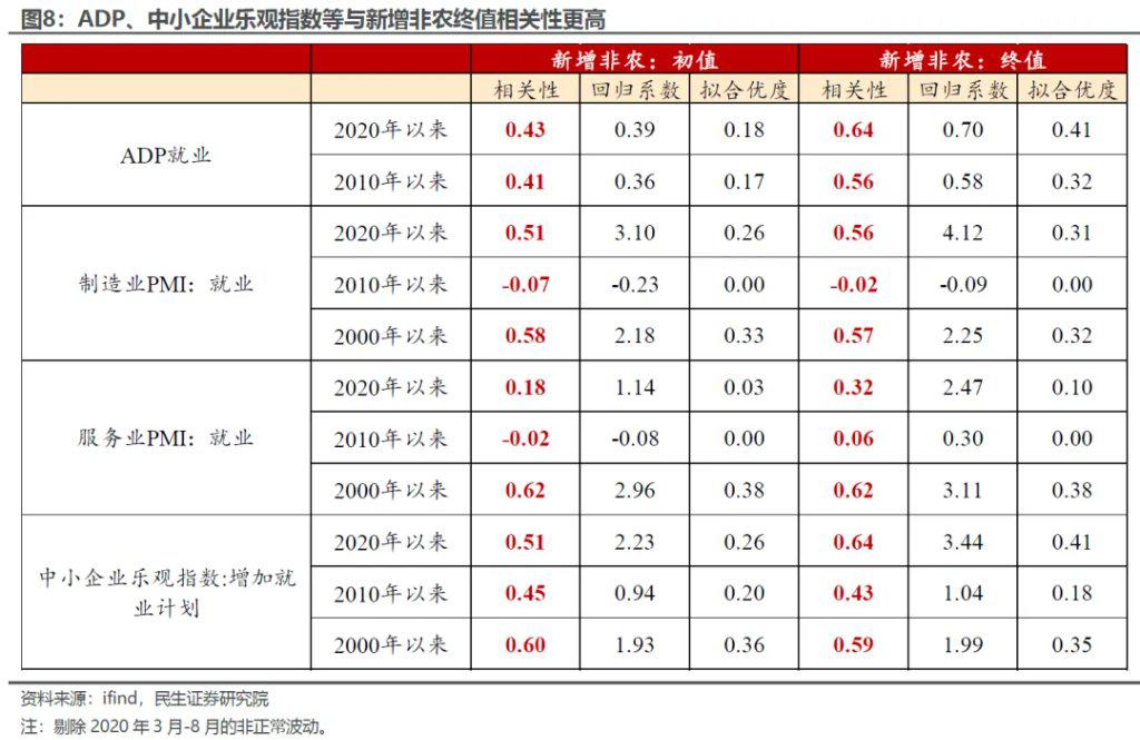 横向对比其他劳动力市场指标,8 月非农也存在低估概率。ADP 就业、PMI 就业指数、中小企业招聘计划等指标与非农终值的相关性普遍高于非农初值,而当前这些指标 8 月的下行幅度均可控,并未像非农初值剧烈放缓。这一对比也暗示,8 月非农在后续有一定的上修概率。